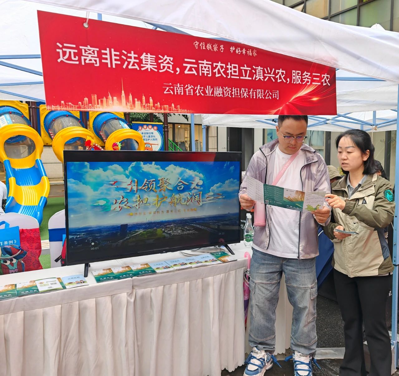 省農(nóng)擔(dān)公司設(shè)立專門咨詢臺,通過發(fā)放業(yè)務(wù)宣傳折頁,播放公司宣傳片,積極為參與群眾講解農(nóng)業(yè)融資擔(dān)保政策。用通俗易懂的語言,結(jié)合“虛假農(nóng)業(yè)項(xiàng)目融資”和“虛假擔(dān)保”等典型案例,為老百姓深度剖析非法集資分子利用群眾對政策不熟悉、渴望低成本融資等心理實(shí)施詐騙的套路;并現(xiàn)場提醒群眾:“選擇農(nóng)業(yè)擔(dān)保服務(wù),認(rèn)準(zhǔn)云南農(nóng)擔(dān)官方渠道”,引導(dǎo)群眾通過正規(guī)擔(dān)保機(jī)構(gòu)獲取金融服務(wù),切實(shí)保護(hù)自身合法權(quán)益。
