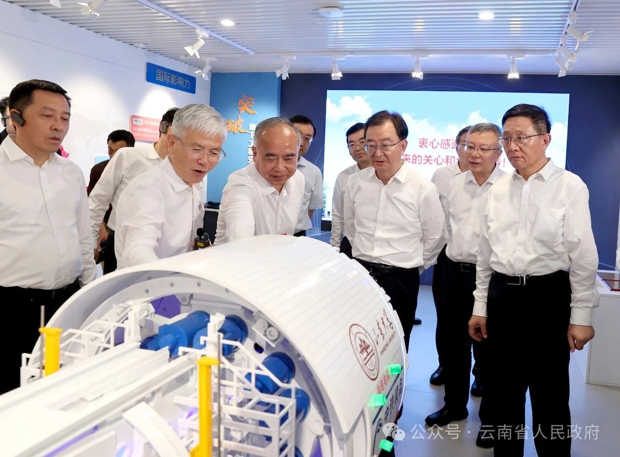 △ 云南省黨政代表團在山東大學考察隧道工程災變防控前沿技術在滇應用情況。