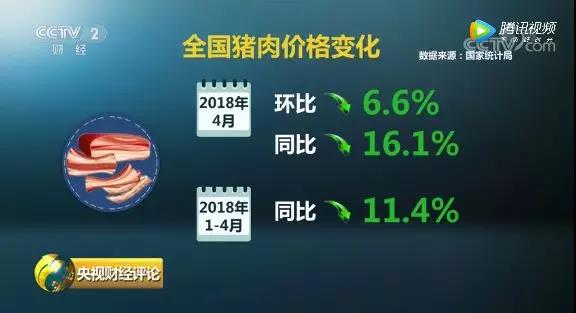 4月份,豬肉價(jià)格環(huán)比下跌6.6%,同比下跌16.1%,創(chuàng)5年來(lái)新低,生豬價(jià)格更是創(chuàng)8年新低;1到4月份,同比下跌11.4%。