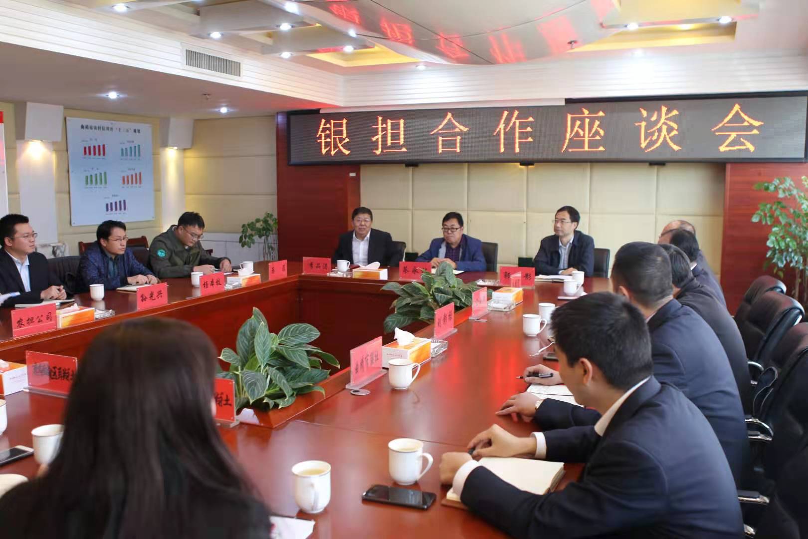 為積極響應云南農擔與云南省農村信用合作聯社于2019年11月1日簽訂的《銀擔戰(zhàn)略合作協議》精神要求,進一步強化統籌安排,擴大合作空間,充分發(fā)揮財政協同金融支農社會責任,向曲靖市農村市場注入金融活水。11月6日,云南農擔曲靖辦事處與中國人民銀行曲靖市中心支行、曲靖市農村信用合作聯社在曲靖市聯社共同召開銀擔合作座談會。云南農擔董事長郭影、戰(zhàn)略發(fā)展部負責人蔡菲、中國人民銀行曲靖市中心支行行長蔡永林、曲靖市農村信用合作聯社黨委書記理事長李品濤、黨委副書記聯社主任岳德寬出席會議并發(fā)表講話。中國人民銀行曲靖市中心支行楊本枝、劉彰祿、曲靖市聯社張興國、麒麟區(qū)、馬龍區(qū)、沾益區(qū)聯社負責人及曲靖辦事處全體成員參加會議。