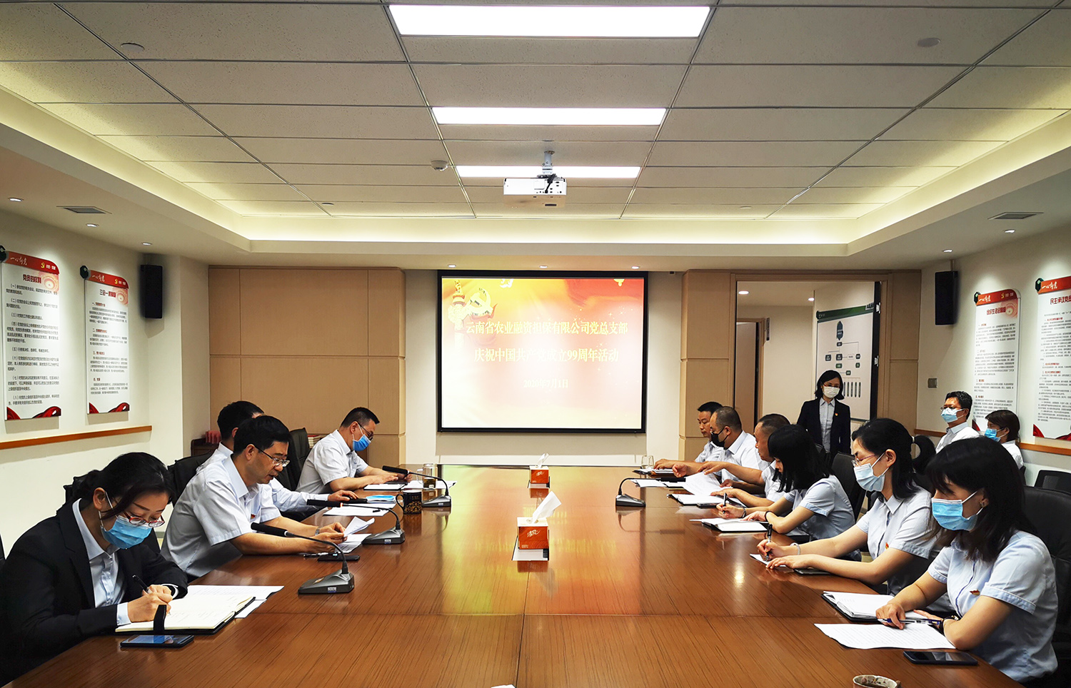 為慶祝中國共產(chǎn)黨成立99周年,激勵黨員不忘初心、牢記使命、奮發(fā)有為,增強(qiáng)黨員的榮譽(yù)感、責(zé)任感、使命感,7月1日,云南省農(nóng)業(yè)融資擔(dān)保有限公司(以下簡稱“云南農(nóng)擔(dān)”)開展慶祝中國共產(chǎn)黨成立99周年活動。云南農(nóng)擔(dān)黨總支部書記、董事長郭影作活動講話,活動由黨總支部副書記、總經(jīng)理杜開波主持,公司全體在家黨員參加了活動。
