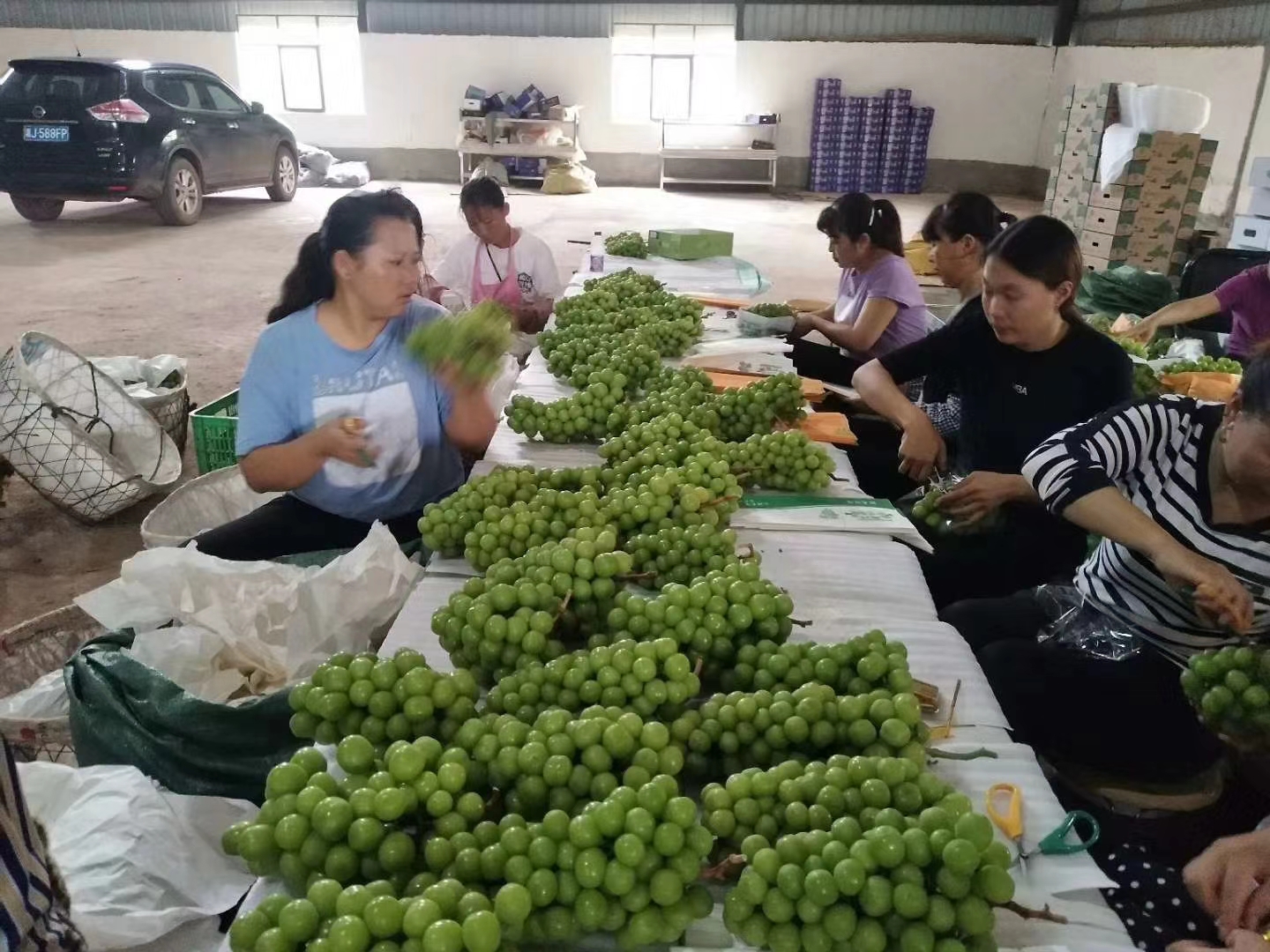 云南農(nóng)擔(dān)公司在??蛻綦p柏縣三江葡萄莊園有限公司成立于2013年,注冊資本金100萬元,是一家專門從事葡萄種植銷售的企業(yè),現(xiàn)有技術(shù)人員2人,管理人員5人,一線種植固定工人40余人。在雙柏縣大麥地鎮(zhèn)很本楷建有葡萄基地50畝,用于試種陽光玫瑰,并取得一定經(jīng)驗。在農(nóng)擔(dān)公司支持和幫助下,2018年公司擴(kuò)大種植規(guī)模至185畝并取得了一定的經(jīng)濟(jì)效益。由于綠汁江畔獨特的氣候條件和精湛的技術(shù),三江公司開創(chuàng)了雙季葡萄的先河,一年可采收葡萄2次,分別于4月初和9月底上市。以上圖片為盡調(diào)時拍攝的基地工人包裝陽光玫瑰的照片。