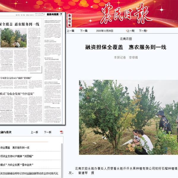 《農(nóng)民日報(bào)》點(diǎn)贊云南農(nóng)擔(dān)惠農(nóng)服務(wù)見成效