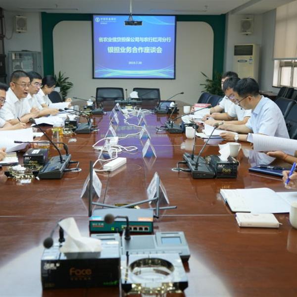 7月30日,云南農(nóng)擔(dān)董事長(zhǎng)郭影攜戰(zhàn)略發(fā)展部負(fù)責(zé)人蔡菲、農(nóng)擔(dān)一部負(fù)責(zé)人劉川、紅河辦事處和彌勒辦事處到中國(guó)農(nóng)業(yè)銀行紅河州分行開展業(yè)務(wù)座談。