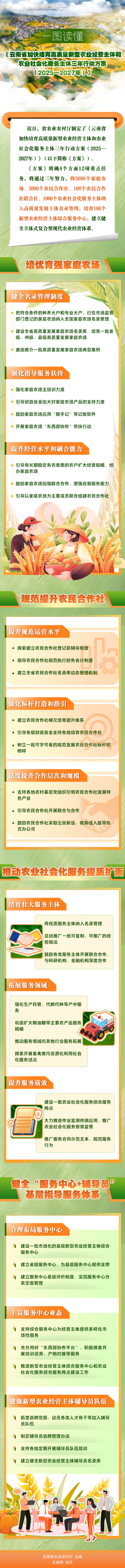 一圖讀懂《云南省加快培育高質(zhì)量新型農(nóng)業(yè)經(jīng)營主體和農(nóng)業(yè)社會化服務(wù)主體三年行動方案(2025—2027年)》