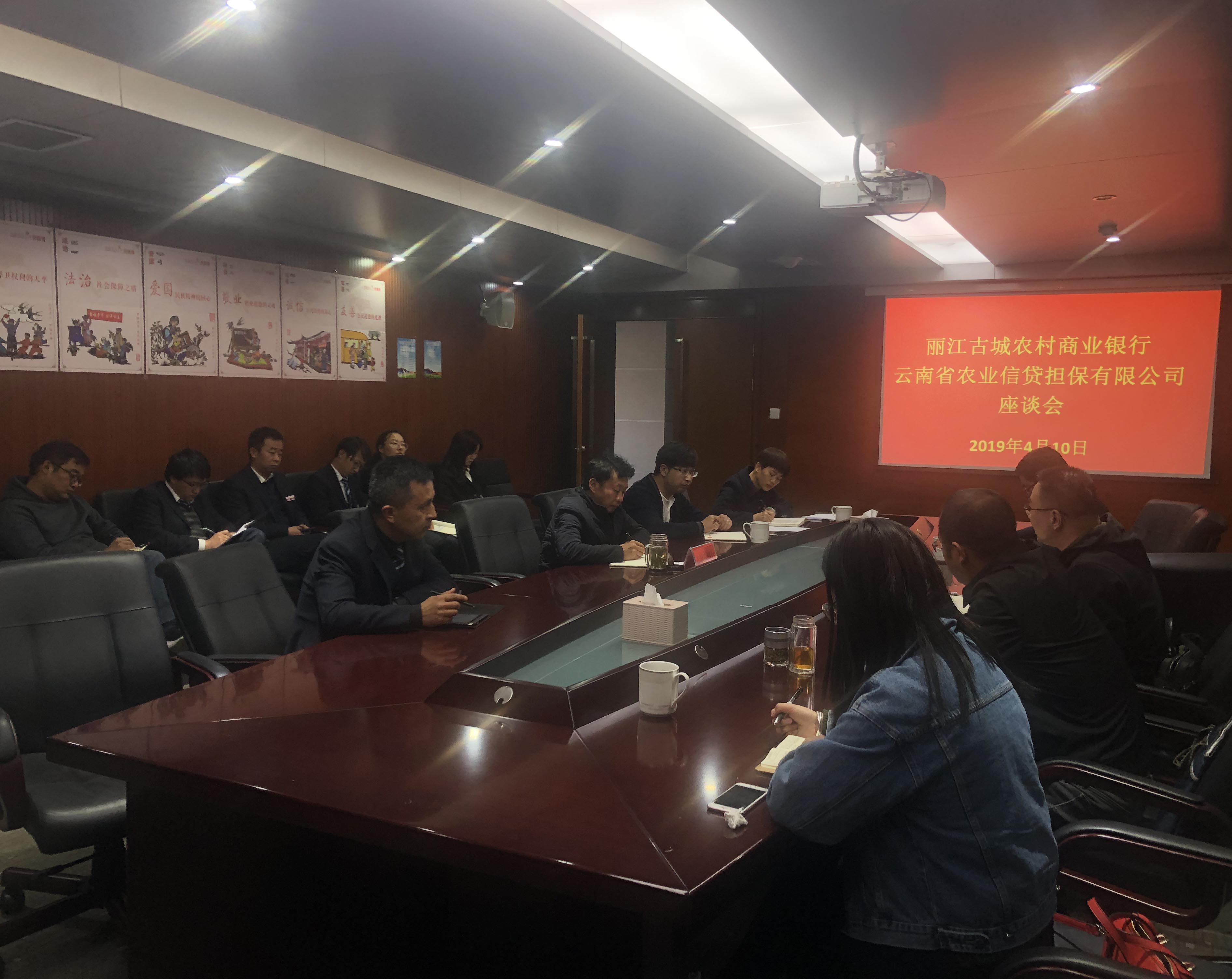 下午與古城農(nóng)商行董事長蔡云波,信貸部總經(jīng)理鄭樹立,及各支行行長開展座談會(huì)。農(nóng)商行董事長蔡云波詳細(xì)介紹了古城農(nóng)商行的基本情況,指出農(nóng)商行在三農(nóng)有一定的地位優(yōu)勢,涉農(nóng)客戶群體廣,希望雙方加強(qiáng)對接,推進(jìn)業(yè)務(wù)發(fā)展,共同解決三農(nóng)“融資難,融資貴”的問題。副總經(jīng)理廖寅皓向古城農(nóng)商行詳細(xì)介紹了公司的基本情況,業(yè)務(wù)準(zhǔn)入標(biāo)準(zhǔn)及公司現(xiàn)階段業(yè)務(wù)發(fā)展情況,表示公司一直以來都重視與農(nóng)信社體系的對接,重視與農(nóng)信社的合作,指出目前麗江辦與古城農(nóng)商行業(yè)務(wù)增速較為緩慢,項(xiàng)目數(shù)量相對落后,希望此次座談形成新的共識,在2019年有新突破,新開展,積極推動(dòng)業(yè)務(wù)開展。